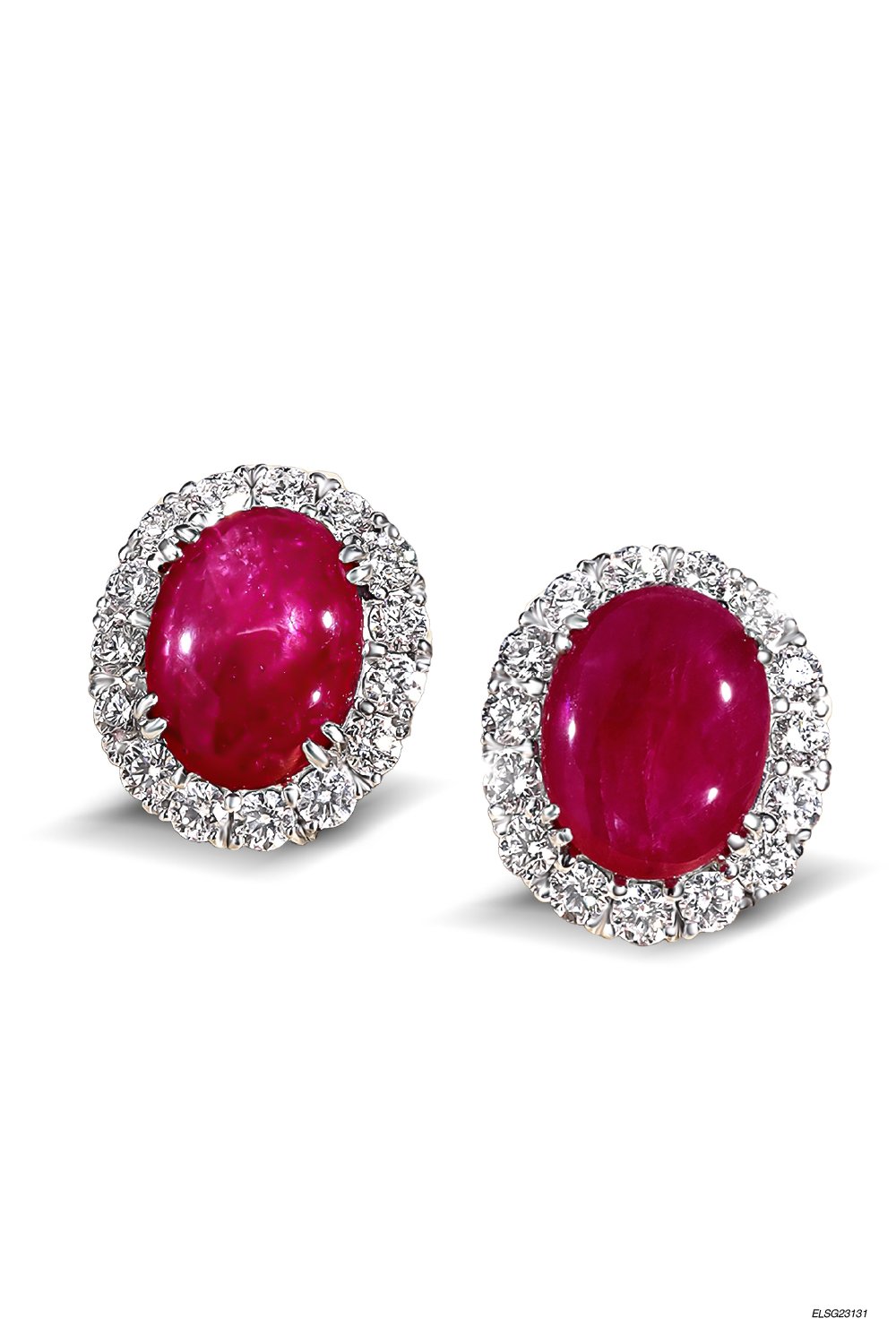 ต่างหูทับทิมแท้ ล้อมเพชร